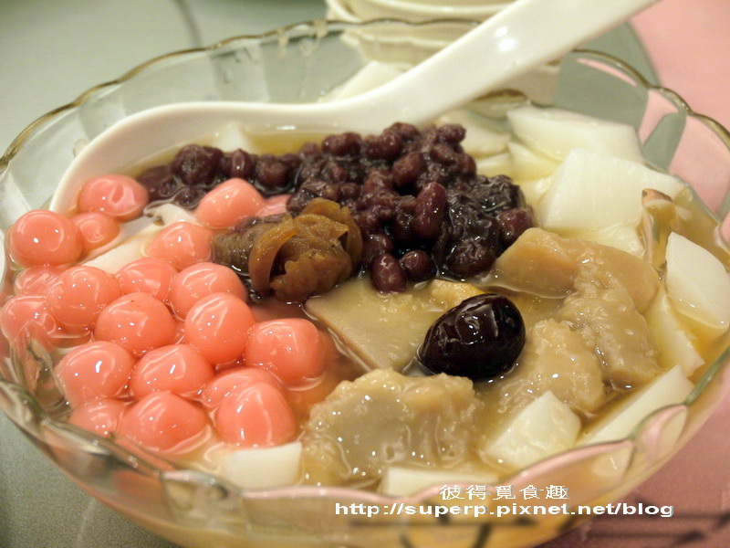 餐廳招待的杏仁冰。上面還有圓仔,芋頭,以及紅豆,都很不錯。
