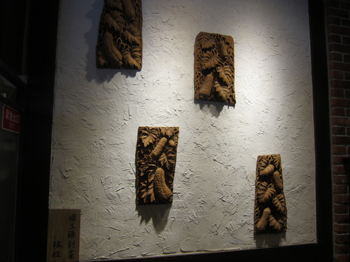 前往二樓的樓梯一旁牆上,掛著好幾個十分有風味的傳統雕刻,栩栩如生十分引人入勝~