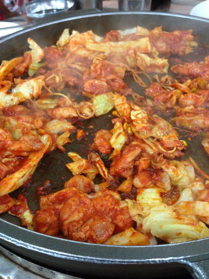美味的辣韓料理當然不忘還有新村的春川辣炒雞排,剛開始端上桌還是生雞肉......