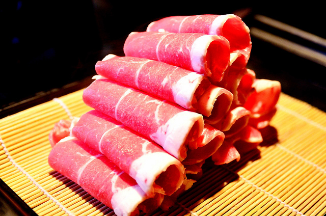 雪花般的油脂均勻分布在肉上,片的薄薄的厚度均一