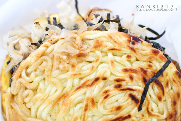 鳥巢麵堡?聽名字感覺很特別,原來就是將拉麵放在圓形鐵板模具裡去壓模烤成像米漢堡的形狀,和米漢堡不同的是鳥巢麵堡為拉麵做的。