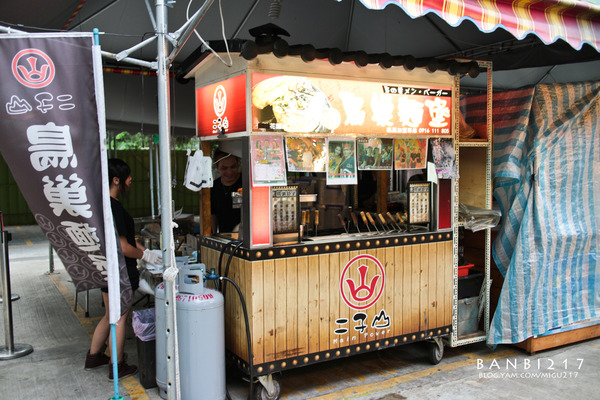 攤位上擺滿旅行應援團及各大新聞電視媒體的採訪介紹照片。鳥巢麵堡口味目前有四種:60元的札幌馬鈴薯堡和其他為80元的鹿兒島起司豚堡、茨城鮮魚堡(茨怎麼唸?發音為ㄘˊ)、宮崎海老堡。
