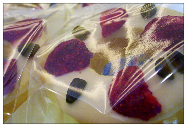 另外,小倉先生還引進日本現在很流行 的,把切片小年輪上再加淋上巧克力、白巧克力、草莓、核桃…等配料,算是小年輪蛋糕的加強版!常溫下:從出爐到吃下肚子,約可以放七天的時間,又攜帶方便,所以很適合自己吃或是送人喔~~
