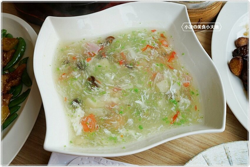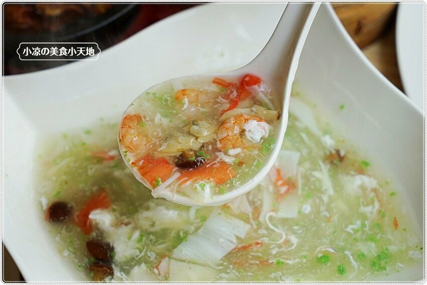 翡翠海鮮羹內有著不少蝦仁、蟹肉棒、蛤蜊肉、翡翠以及馬蹄,羹湯的勾芡不會很厚重,食材的多樣也增添了不少層次感,算是一到清爽的羹湯類。