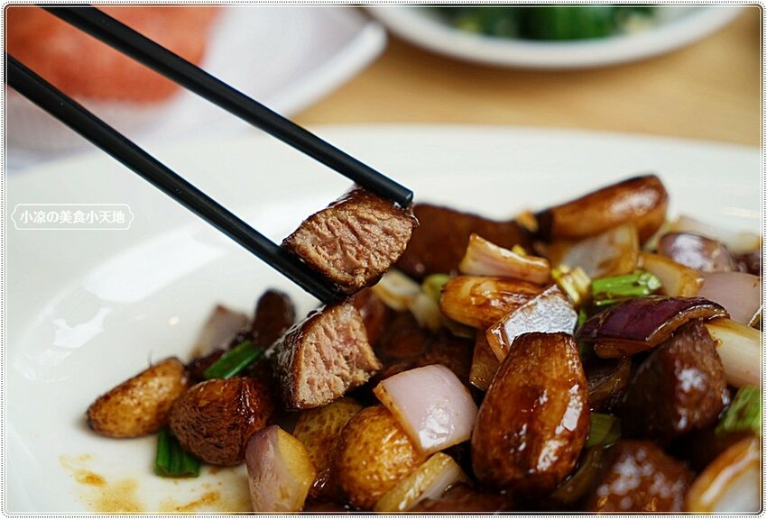 XO醬松坂肉,松阪豬油脂豐富,並帶有獨特的嚼感,拌炒甜豆、紅黃椒、黑木耳、XO醬後香氣十足,鹹香的風味小凉個人覺得需搭白飯吃比較剛好!