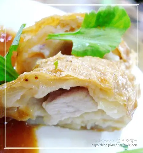 最後的肉捲,大概是這攤我最愛的,同樣的又和肉羹番有一點接近,外面的酥度弱了些,並且有一點像羅東夜市有名的龍鳳腿,但餡的軟嫩度又優了些,肉捲中的肉餡,感覺菜的比較也多了些,是以吃起來也有一點像雞捲或是菜捲,調味端也相當不錯,尤其是沾了甜辣醬後更形好吃。