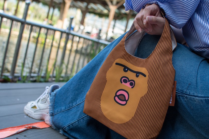 你看你看,這個『福猩』造型環保袋是不是超可愛?這可是富里農會販售的獨家週邊商品,一到現場,我就腦波弱的下手了一個,真的好可愛。