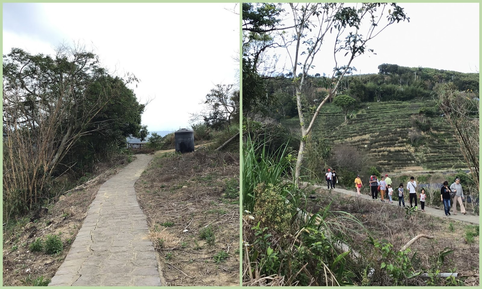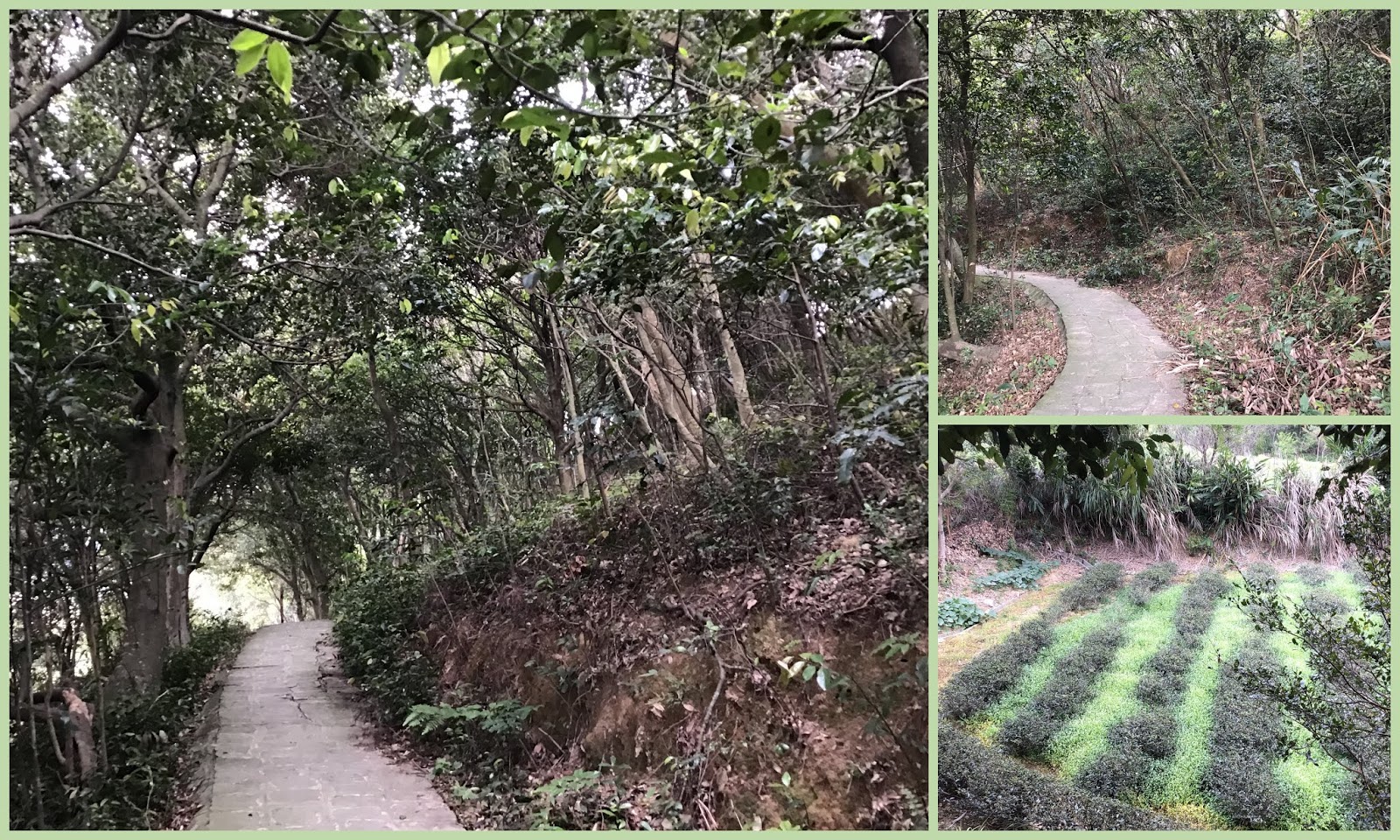 走在鄉間的小徑上,有草坪、涼亭、茶園、百年茶樹、