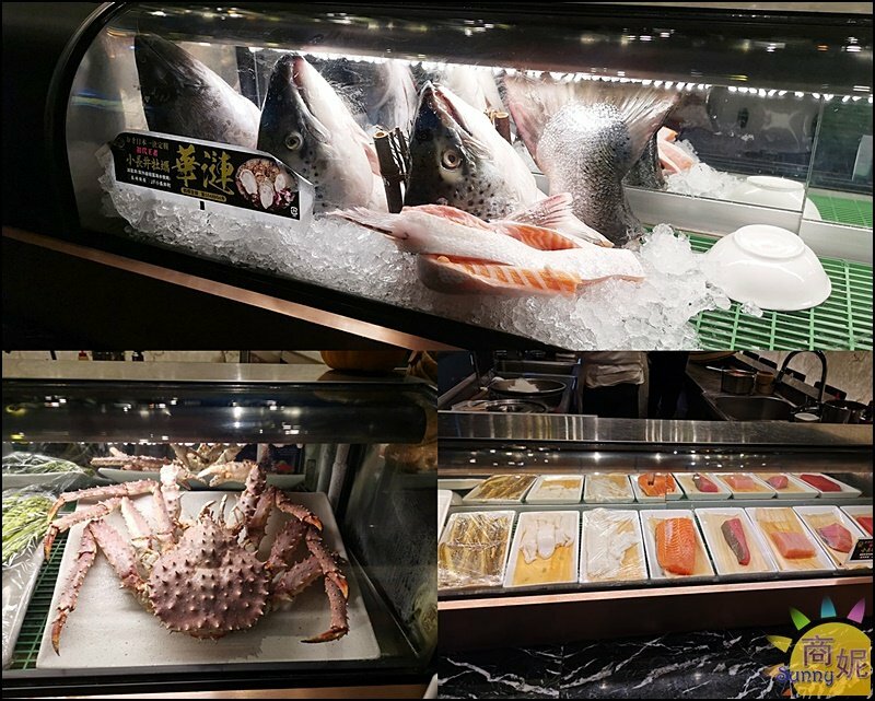 阿那祭的食材用料很新鮮,直接進貨一整條魚師傅自己分切,用餐時有時候還能看到整條魚分切秀。我們今天來看到吧台食材櫃裡有切好的魚頭、還有一大隻帝王蟹,各種生魚片刺身一字排開,等著滿足老饕的味蕾。