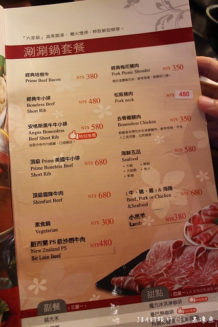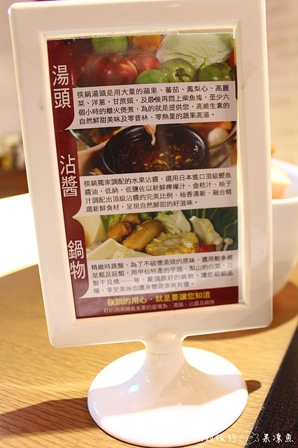 回到座位上,桌上的小立牌有湯頭、沾醬、鍋物的介紹。