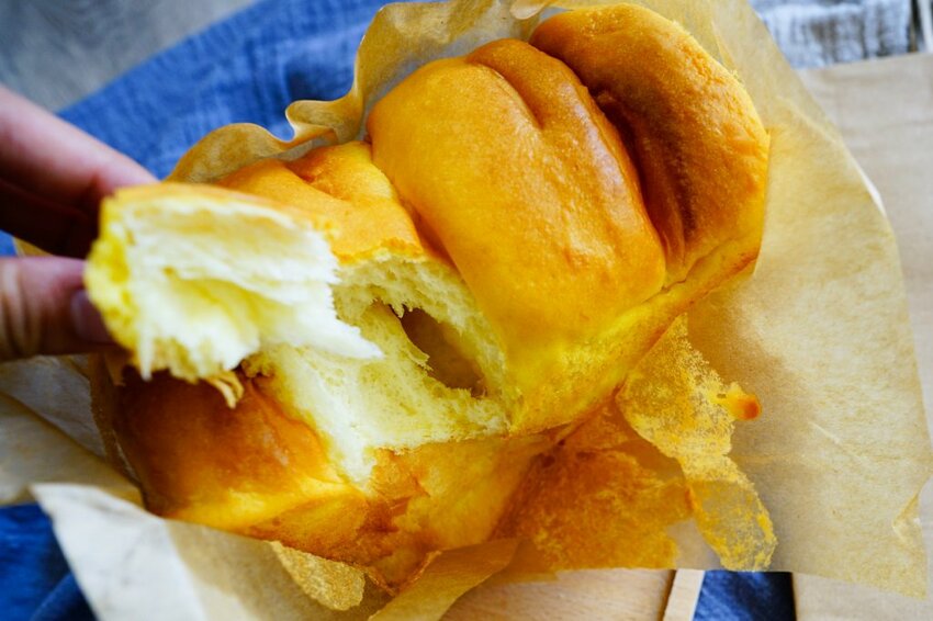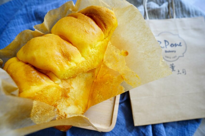 除了麵糰裡揉入地瓜泥,也加入了香甜地瓜塊,帶點天然的甜度香氣很是迷人,當天帶的三種吐司口味,我個人最喜歡地瓜~