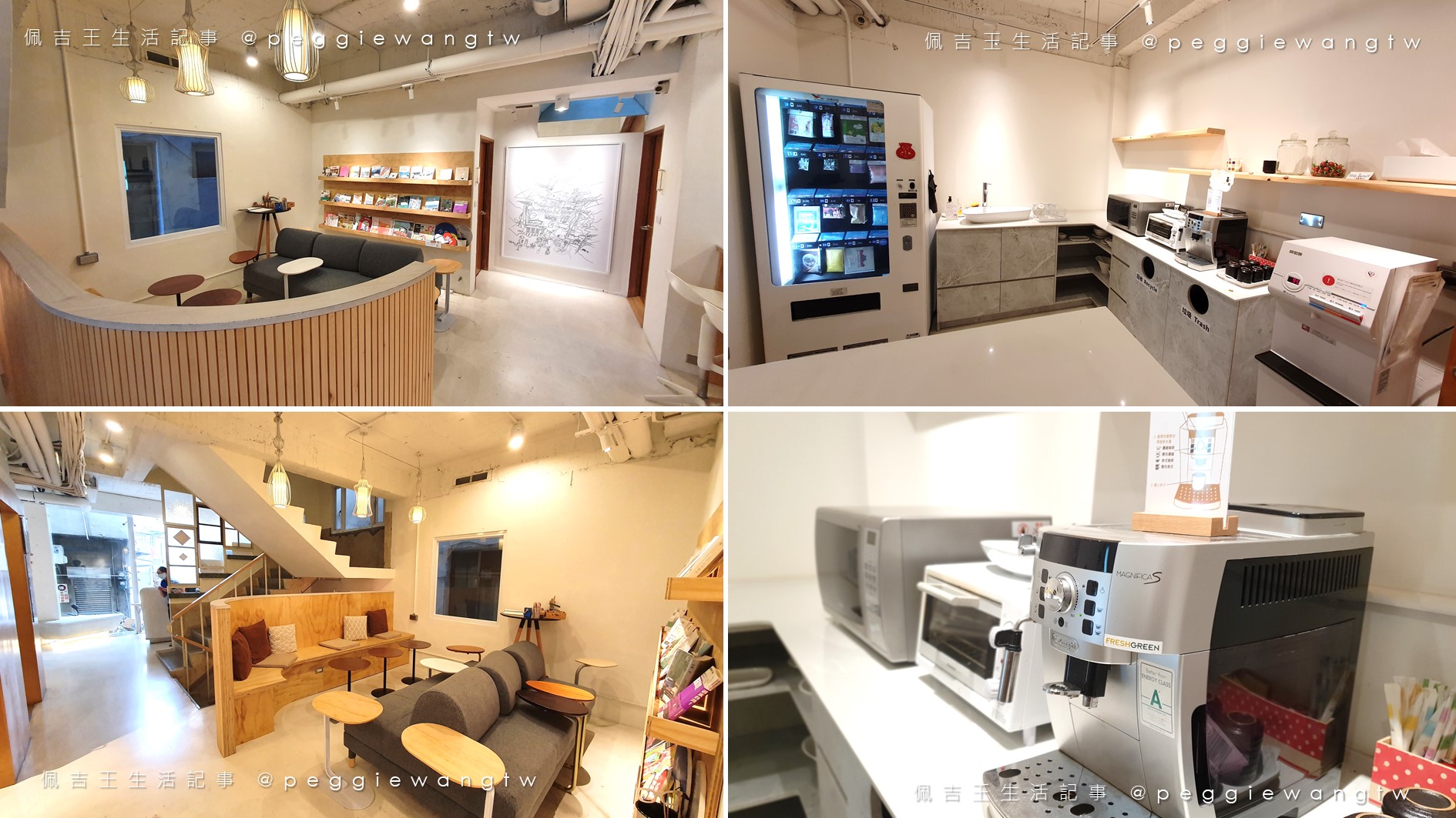 一樓公共空間為交誼廳,提供免費蘋果電腦、WIFI、圖書,免費全自動濃縮咖啡機、唐寧茶、王子麵、棒棒糖,還有一台自動販賣機,販售面膜、濕紙巾、面紙等生活用品。