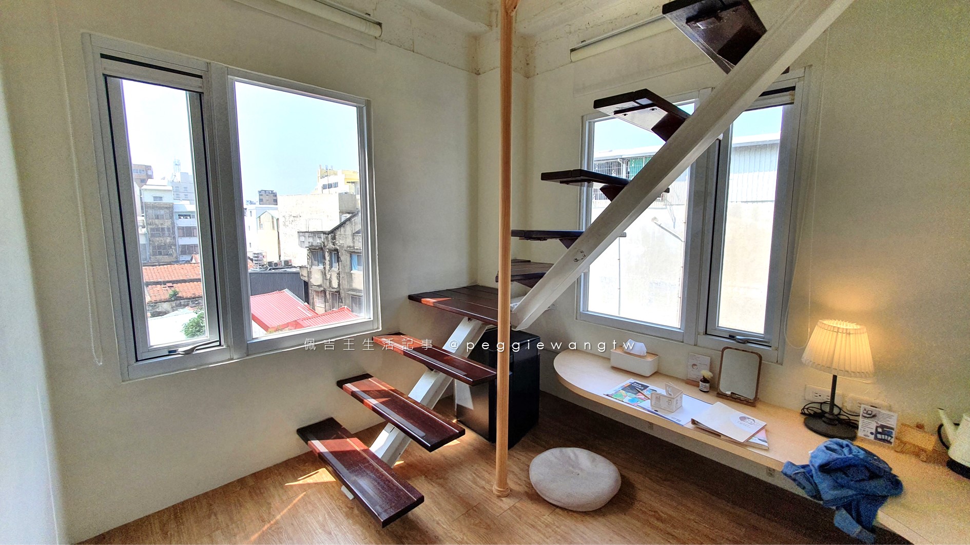 | 圖:樓中樓的二樓,窗簾基本上是無法拉起,根本不用設鬧鐘,是台南的陽光叫醒我XD |