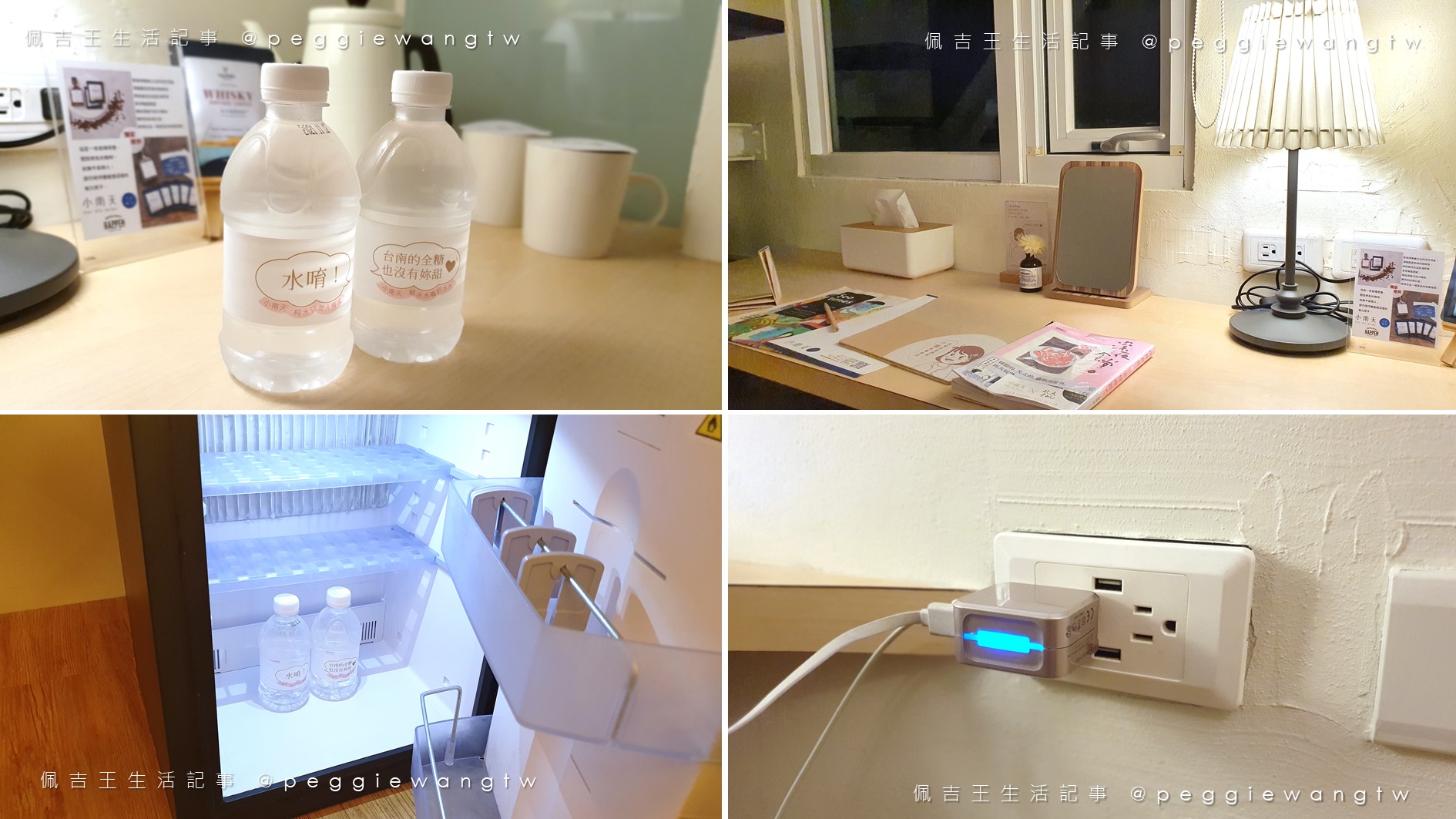 和樓中樓雙人房不同的是,吹風機為P牌(一樣風力強大),品牌礦泉水改為一罐,也少了冰箱和熱水壺與咖啡。