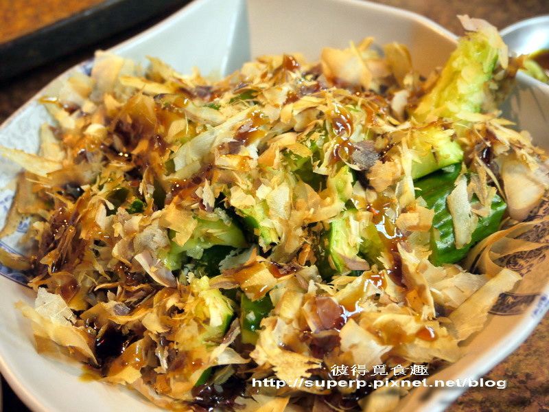 招待的柴魚小黃瓜(很少這樣子搭配,柴魚增添了香氣跟口感,清爽可口)