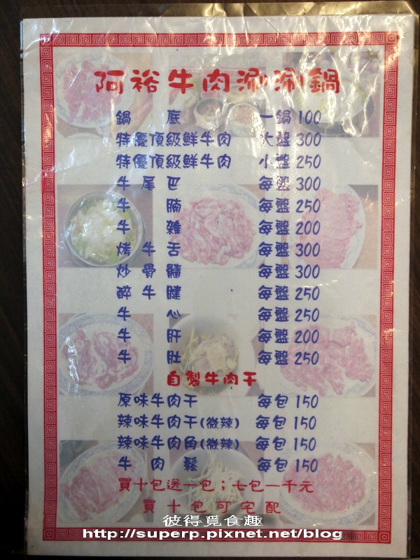 菜單一覽(這邊也有一般的牛肉湯,不過我們人多,所以點這邊極為出名的牛肉涮涮鍋。基本上吃好的牛肉就別想要能有多便宜,所以這價格也頗為京城價)