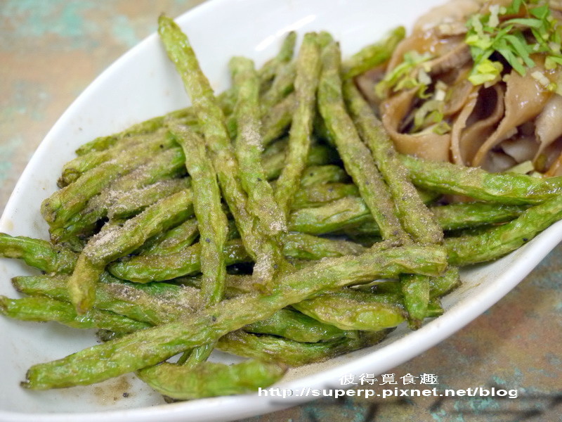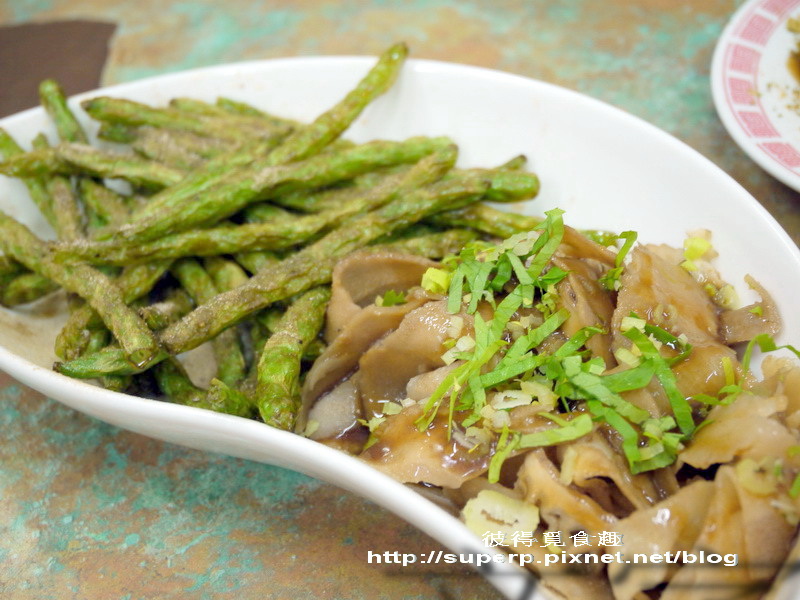 椒鹽四季豆和玉蘭筍雙拼$90(四季豆還不錯,比較特別的是玉蘭筍,我壓根沒聽過這種筍子。如果不跟我說這是蔬菜,我看這樣子會猜這是某種類似牛肚的內臟類小菜。吃起來口感爽脆,頗特別的,沒吃過可以試試看)
