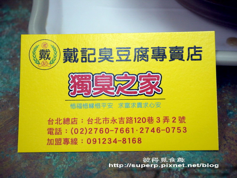 雖然喜歡臭豆腐,但並不代表常吃,因為合我胃口的臭豆腐店不多。吃來吃去,到現在為止,在台北似乎只有兩間臭豆腐是我會想再次光臨的。一間是原本在師大的一吃獨秀,不過現在搬到公館,我好幾年沒去吃了。另一間就是戴記獨臭之家。幾年前吃過,印象很好。最近突然臭豆腐癮小小的發作了一下,就找了朋友一起去吃。
