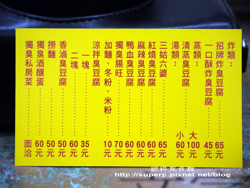 菜單一覽(價格中等,有許多少見的臭豆腐料理)
