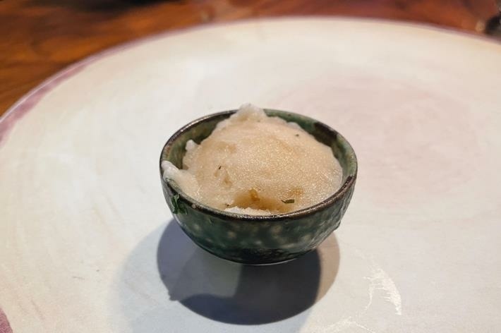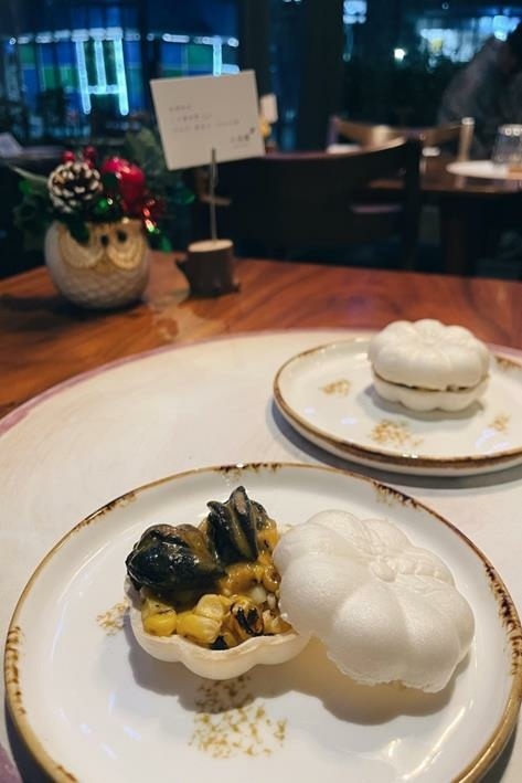 內含的玉米非常甜,也因此田螺反之吃起來沒有味道,加上醬汁過於清淡,搭上無味的最中外殼,整個餐點就是滋味不足..還不如老老實實的去掉華麗的擺盤上個白酒奶油焗田螺.