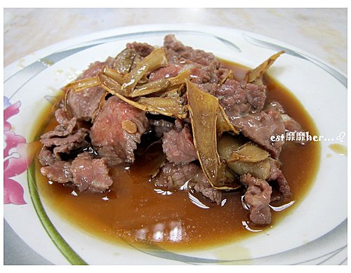 牛肉跟麻油爆炒完的香氣逼人,吃起來無敵幸福的啦 \(^ 0^)/ ~