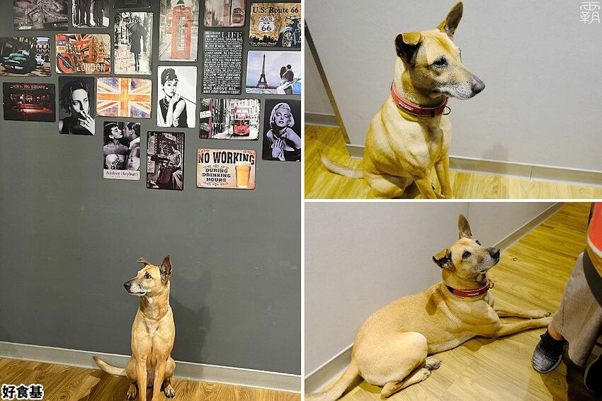 有時候其中一隻比較穩定的店狗會放出來活動,妹妹還會跑到客人旁邊坐檯,並且釋放出渴望的眼神,希望能討到食物吃,也太可愛~(狗狗不能吃人類食物千萬不要餵食嘿~)