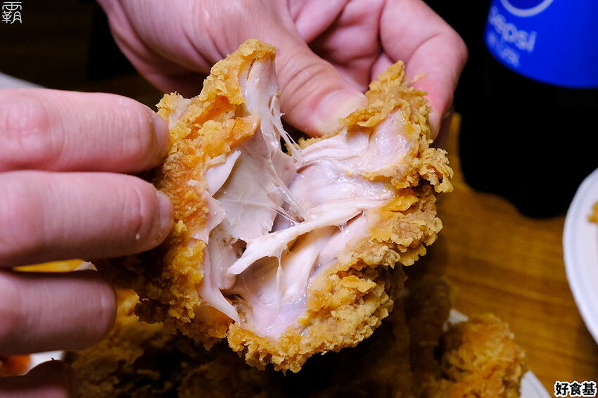 麵衣將雞肉的肉汁鎖在其中,用手撕開炸雞還能看見雞肉裡面的肉汁哩~讚~