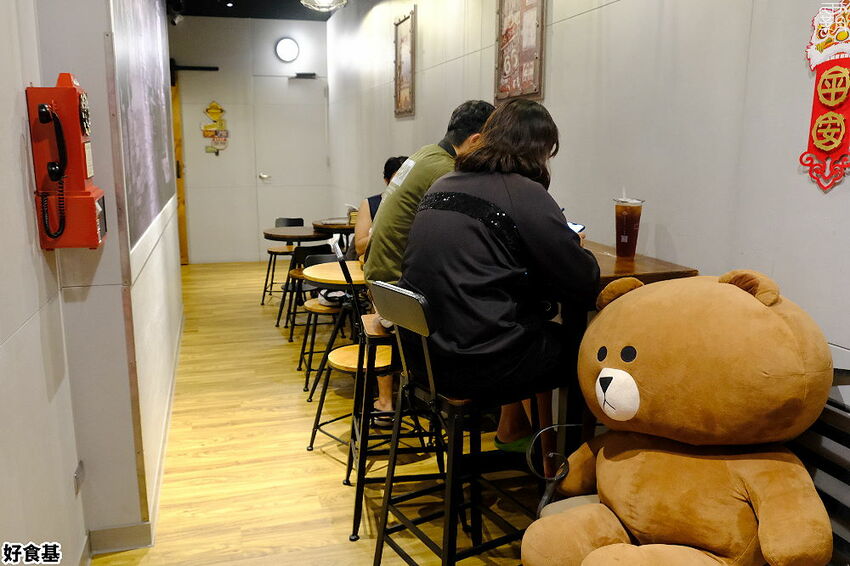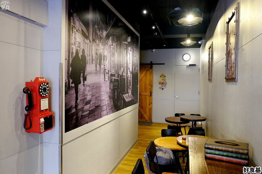 不同於一般美式炸雞的裝潢風貌,「好食基美式炸雞」嶺東店的裝潢是走英倫風,門口還有一座電話亭,美式炸雞與英倫風是個非常有趣的結合。