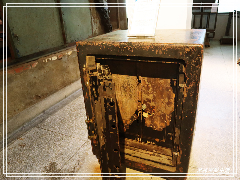 除了舊文物照片,也擺放了不少當年的製茶機械——不過蜜蜜有興趣的是這個保險箱XD,日據時代的金庫耶,雖已年久,但仍看得出當年堅固厚實的構造!有好幾層門鎖,讓人好奇很想打開到最裡層。