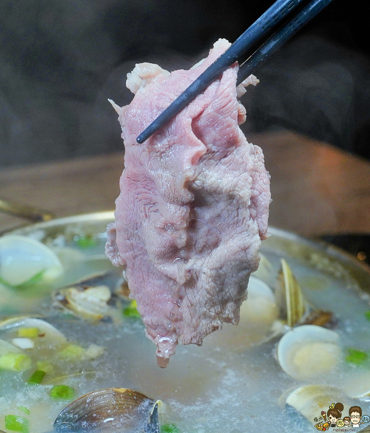 帶出蛤蠣鮮甜湯頭,不用沾醬就很鮮美好吃,板腱牛味道很濃郁香甜