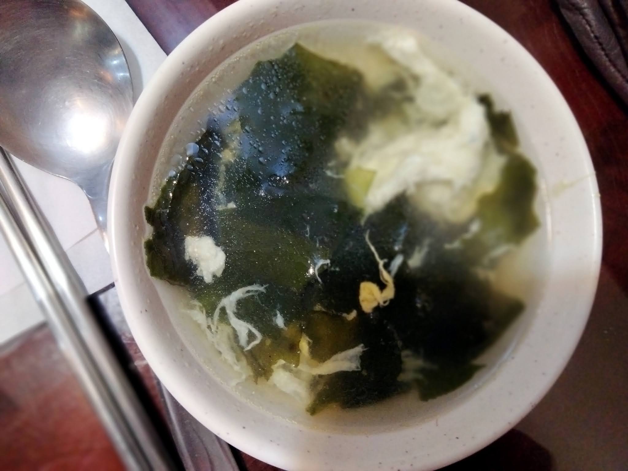 今日湯品是-海帶芽蛋花湯,很少看見可無限續碗的湯品,