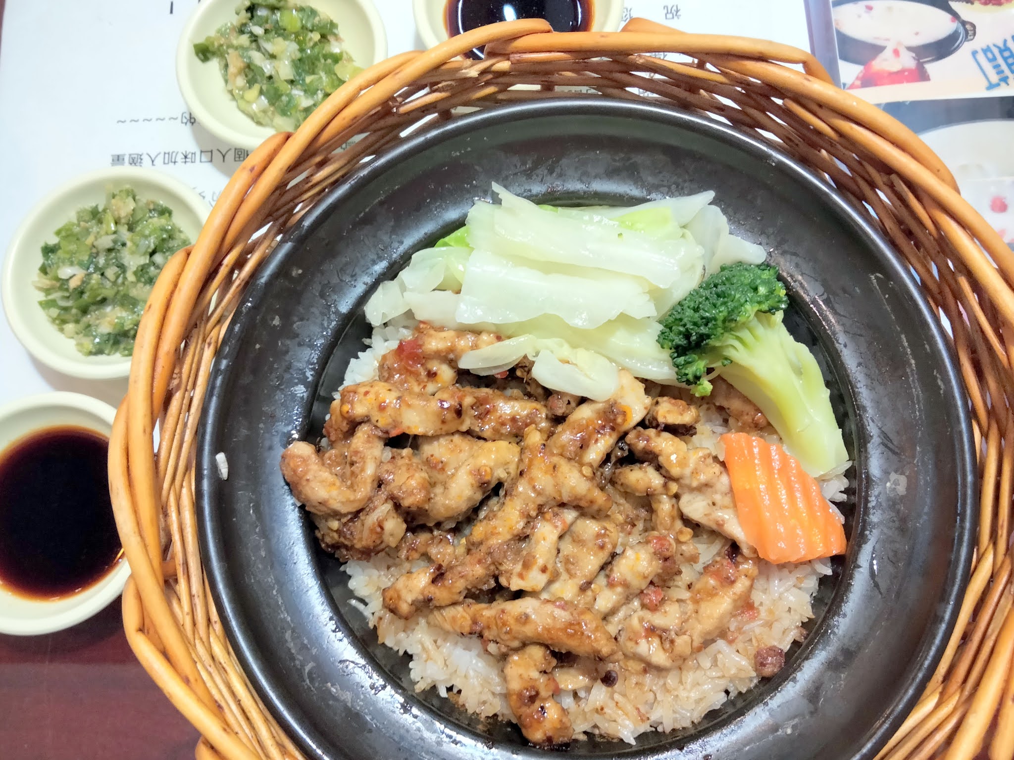 油蔥、讓顧客自行調整鹹度;我點的-麻辣豬肉煲仔飯$100元