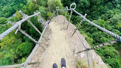 因為要爬上山頂的鐵梯又窄又陡只能一人通行,