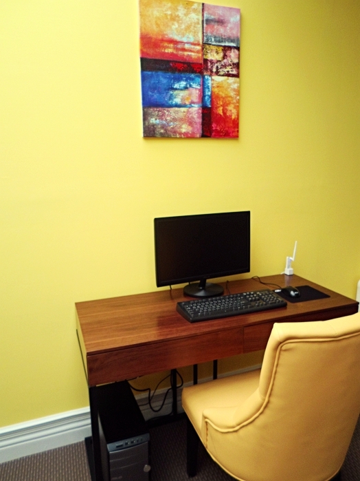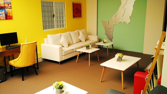 後來吃完早餐後我到了一樓,才發現餐廳走道那邊旁有個房間,原來是交誼廳,可以給旅客們休息喝茶聊天的地方,這是一間牆壁黃色的鮮明房間,有自然光從窗上打下來。