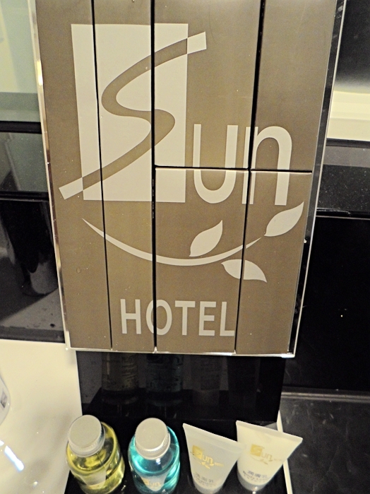 洗手台旁的木浴乳牙刷設計很新穎,可以排出Sun Hotel字樣圖,而且他們的木浴乳跟洗面乳都非常的好用~