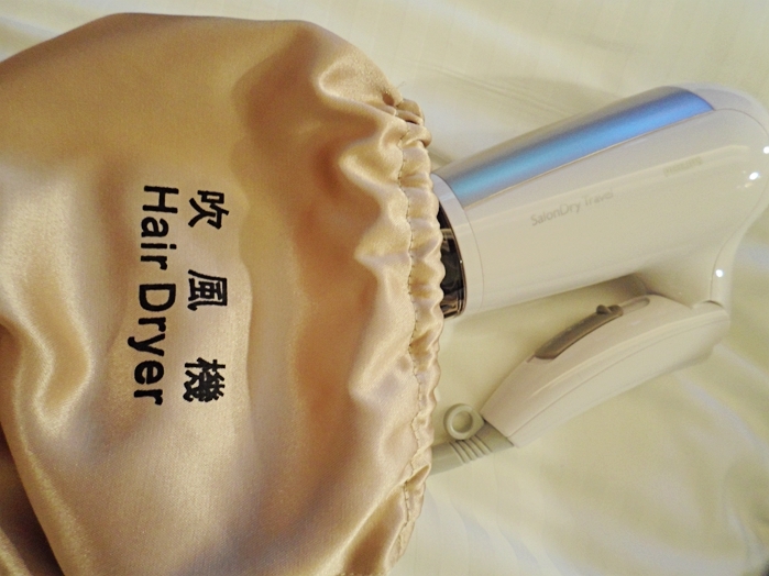 有另外提供換洗塑膠帶跟吹風機放在電視機下方