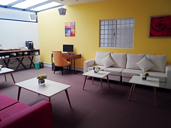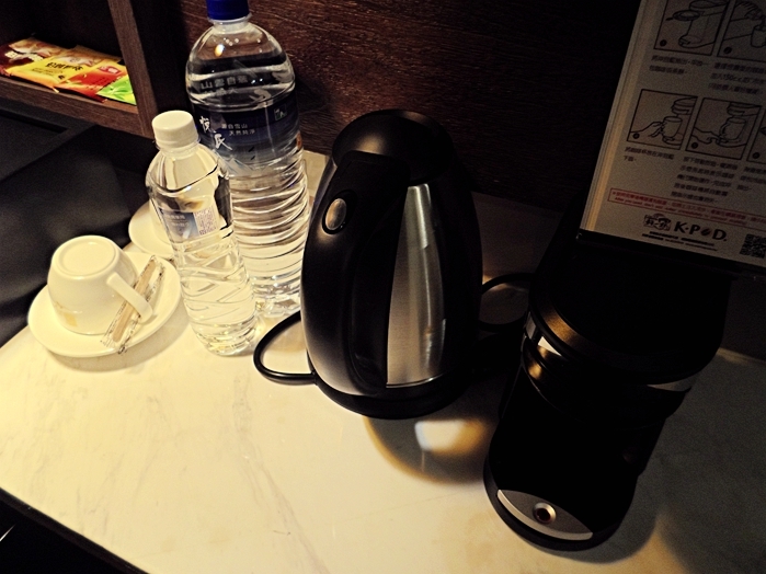 我很喜歡日光花園商務飯店提供的免費點心,就在剛提到的黃色牆壁休息室裡面,下面拍到的小餅乾跟茶包全都是免費給旅客品嘗的,真的很貼心也很溫暖!