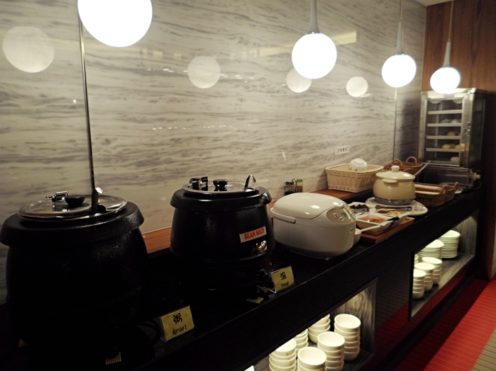 主要有個自助吧台,有麵包吐司及沙拉粥或者是湯甚至連炒的熱盤都有! 還有鮮奶和果汁,食材都算是很新鮮的,口味偏清淡一些。