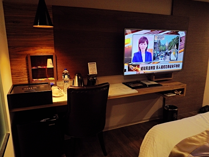 電視旁有個書桌有冰箱和保險櫃,還有提供免費礦泉水跟茶包,眼尖發現有南非國寶茶,也有咖啡機。
