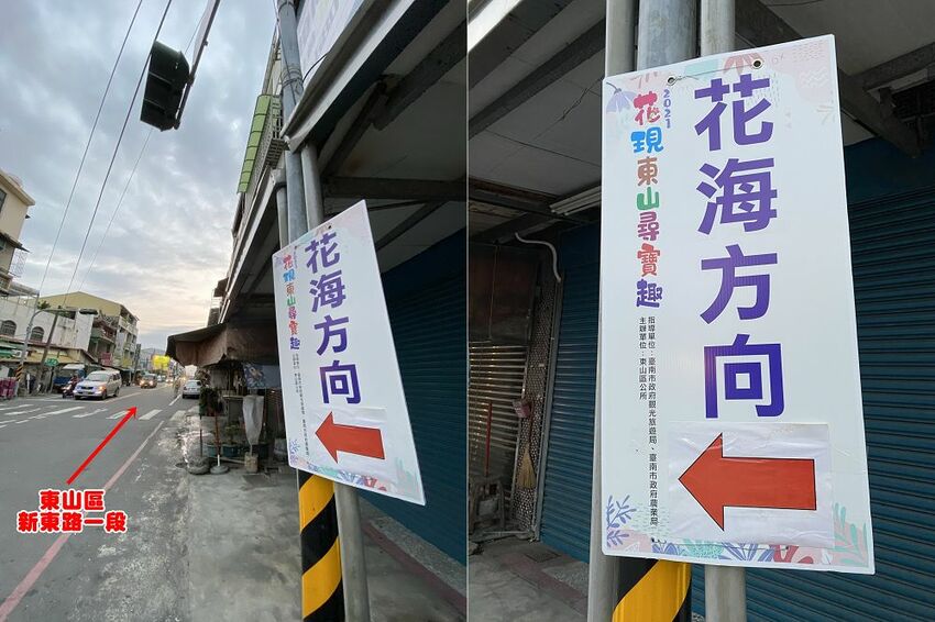 位置二:如果是從東山大街往花田開,就是從中興路 和 新東路一段的那個路口 往新營的方向開