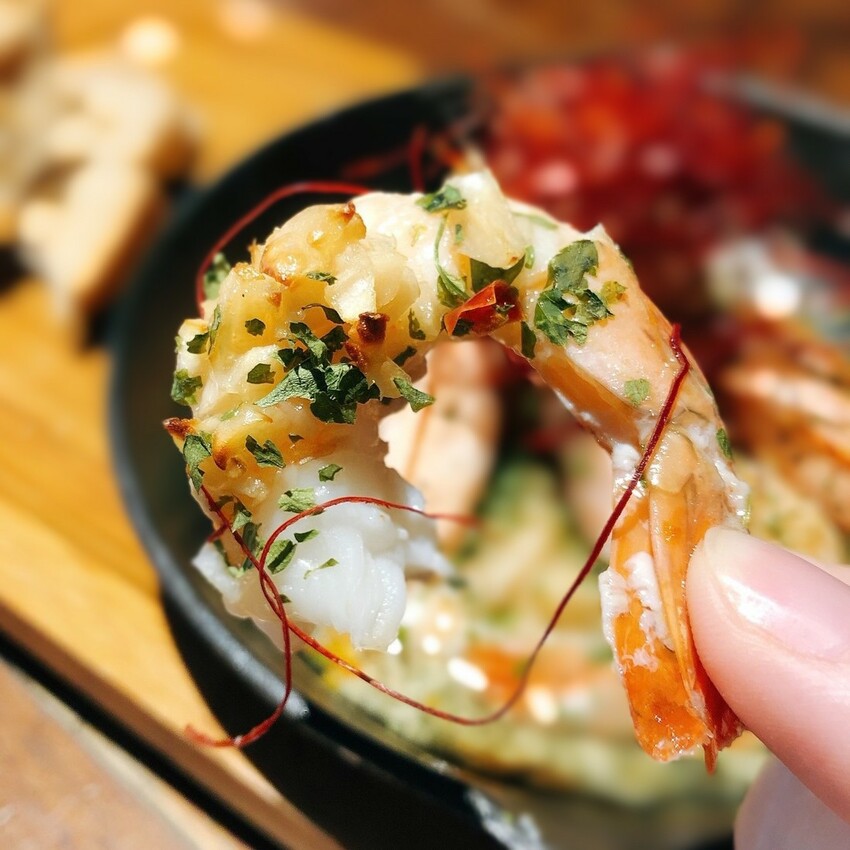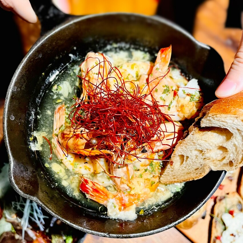 ▼端上桌便散發濃濃的香料及蒜味,推薦將一旁麵包沾上醬料吸附滿滿精華,能加倍感濃濃蒜香的鮮甜~