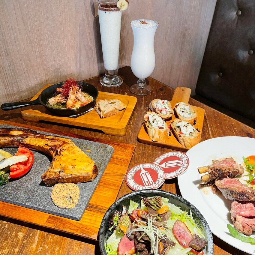 「好米亞GOODIES CUISINE餐酒館」餐點品項以西式料理為主,從下酒菜、義大利麵、燉飯到排餐,還有甜點及飲品一應具全,有甜有鹹通通能好好吃一輪。