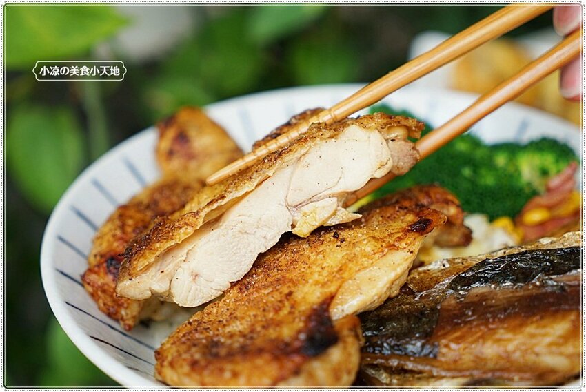 從側面看可以看到雞皮的薄酥,肉質鮮嫩入味又多汁,讓人讚不絕口,而且雞腿肉還保有肉汁相當Juice美味。