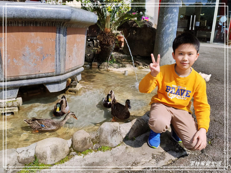 有小動物也是花開了的特色之一,這隻胖胖的麝香豬正在陰涼處睡大覺XD,這正是農場餐廳的店寵,有好幾隻呢!少爺又愛看又會怕😂😂,畢竟和早年的農村社會不同,現在很少能近距離接觸豬豬的。