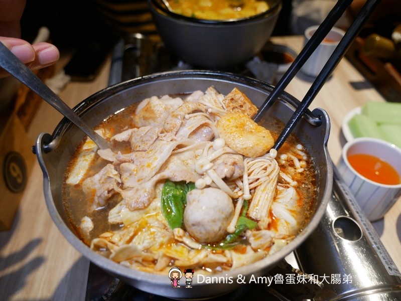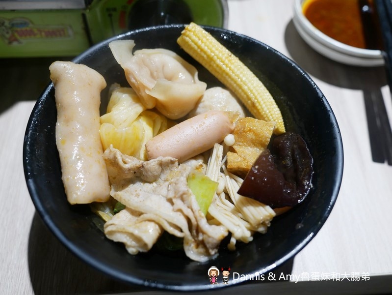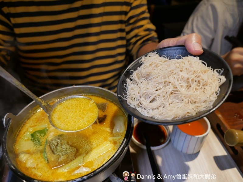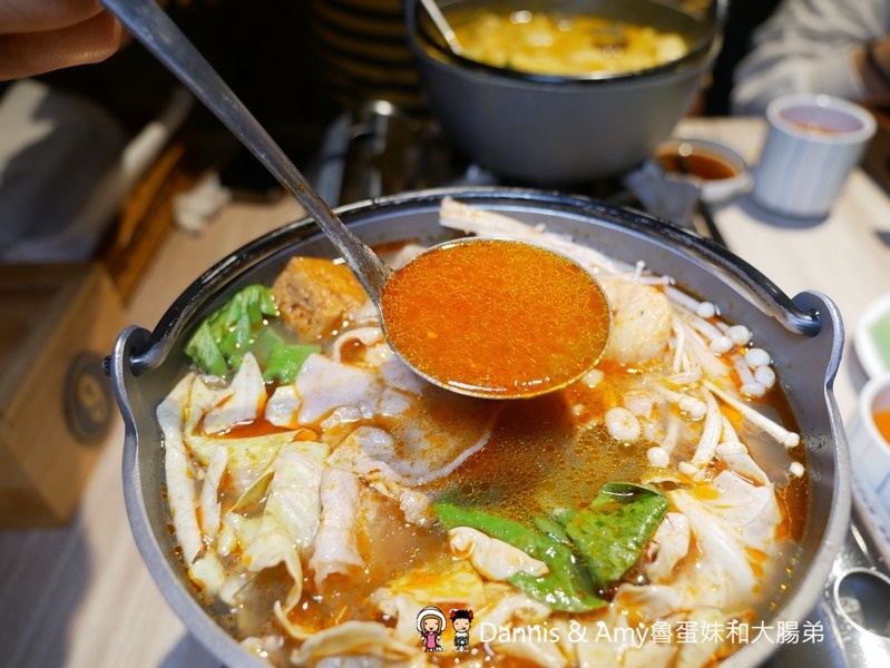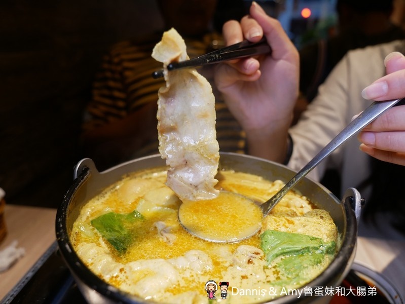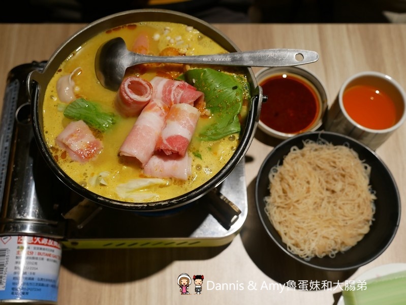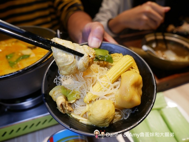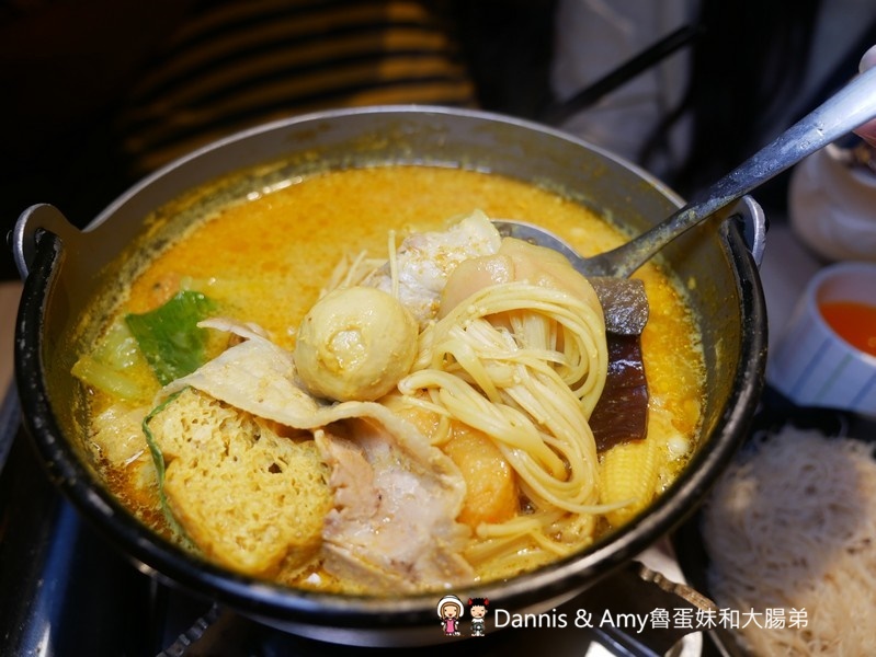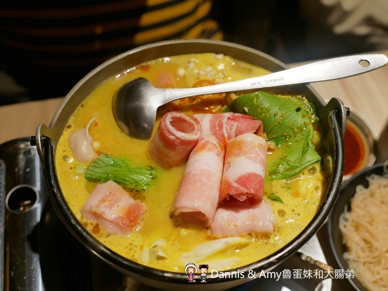肥佬田的南洋叻沙鍋我個人還蠻喜歡的,結合多種咖哩香料混合而成湯頭帶點微辣,它是屬於比較清爽一點的湯頭,而且這樣一鍋配料很豐富,有豬肉片、青菜、木耳、金針菇、火鍋餃等食材。