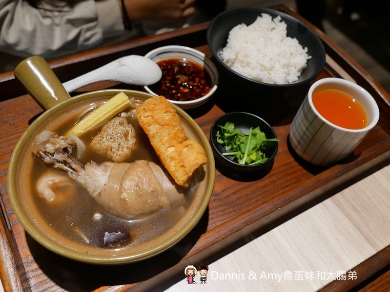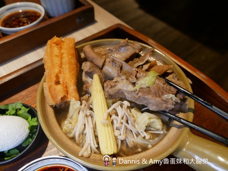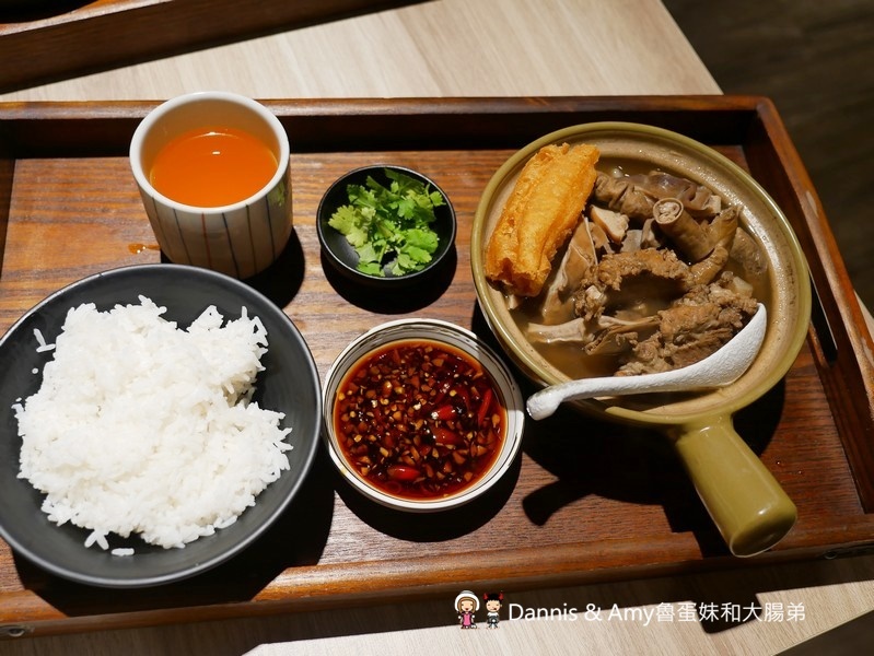 這道綜合肉骨茶鍋之前在四維路吃到的時候就很喜歡,綜合肉骨茶鍋包含了排骨、腸中腸、豬肚還有像是油條、蔬菜等食材,搭配可以任選的主食(泰國米、王子麵及米粉)以及醬料、綜合果汁,一份套餐可以吃得相當地飽足,很多客人來用餐是喝到連湯也不剩。