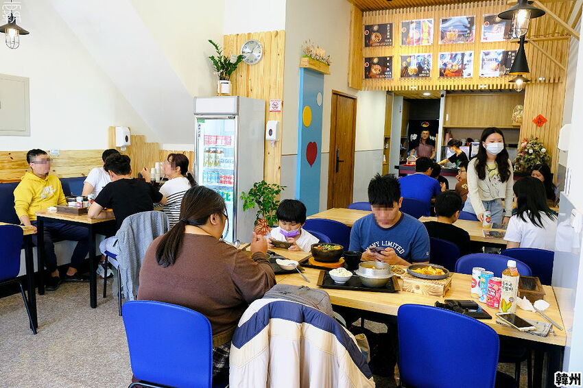 可以看到以藍紅黃三色LOGO圖案,搭配韓州豆腐鍋泡菜鍋的店名作為招牌主軸。