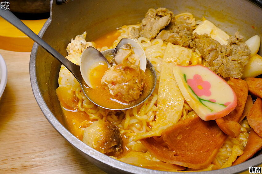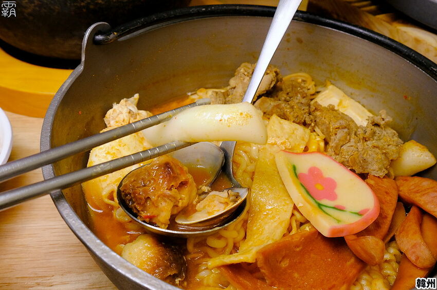 部隊鍋湯頭濃郁配料豐富,韓式泡麵份量足