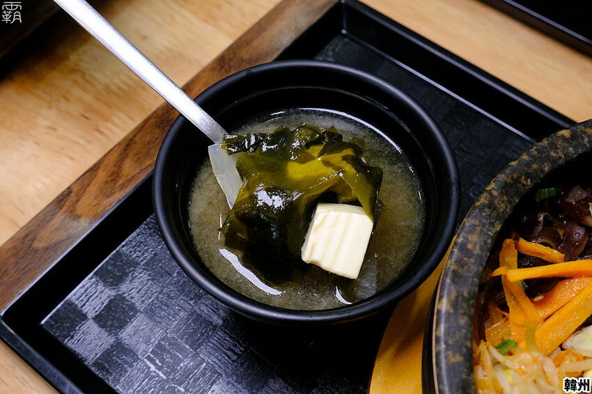 點石鍋拌飯還有附上一碗味噌湯,海帶與嫩豆腐,味道不會太鹹,用料也不少挺不錯的。(石鍋拌飯的湯會隨季節變化)