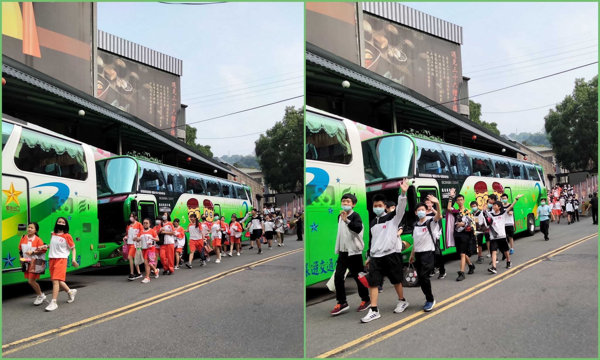 館前已停了不少遊覽車,看學生成群結隊的歡呼著~